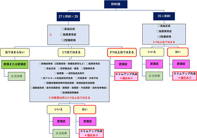 ※BMIが27kg/㎡以上35kg/㎡未満の方の場合以下の 2つの条件をどちらも満たす必要があります。
